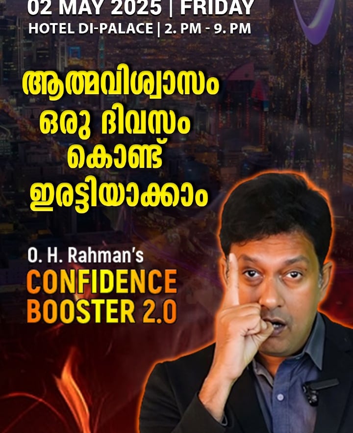 🧠 ✨ Confidence Booster 2.0 ✨ 🧠 💡 Brain Storming, 🧘 Hypnosis & 💪 Motivation എന്നീ സൈക്കോലിജിക്കൽ രീതികളിലൂടെ ജീവിതം മാറ്റിമറിക്കുന്ന ആത്മവിശ്വാസ വർധന പരിശീലനം. ⏳ പരിമിതമായ സീറ്റുകൾ മാത്രം ⏳ 🔥 ഈ അവസരം ഉപയോഗപ്പെടുത്തുക! 🔥